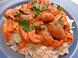A rich and comforting dish made with mushrooms, onions, garlic, and acrid cream, served over noodles or rice.