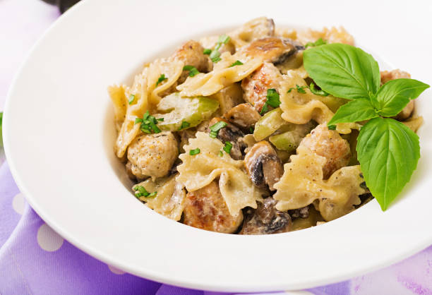 Omaha Steak Italian sausage is sautéed and served over creamy Alfredo pasta. This hearty dish is perfect for a large group and pairs well with a simple salad.